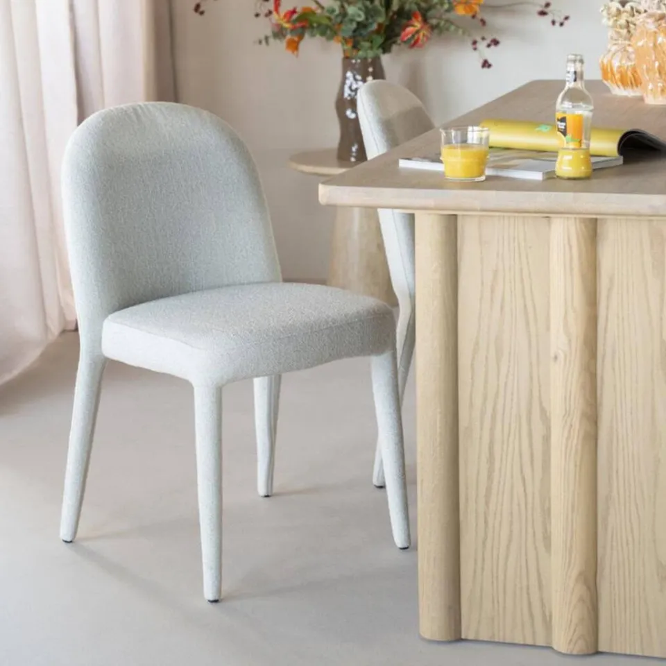 Eetkamerstoel Jaxx van Eleonora is een moderne, volledig gestoffeerde stoel met een zachte uitstraling en aangenaam zitcomfort. De afgeronde vormen en rijke bekleding zorgen voor een warme, uitnodigende sfeer aan tafel. Jaxx is verkrijgbaar in drie stijlvolle kleuren — beige, taupe en bruin — die moeiteloos aansluiten bij zowel neutrale als warme interieurs. Dankzij het eigentijdse ontwerp laat de stoel zich uitstekend combineren met diverse tafels, van hout tot staal.