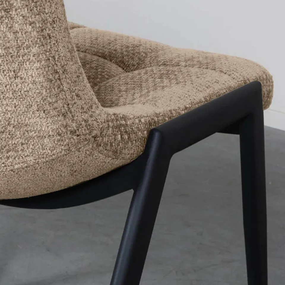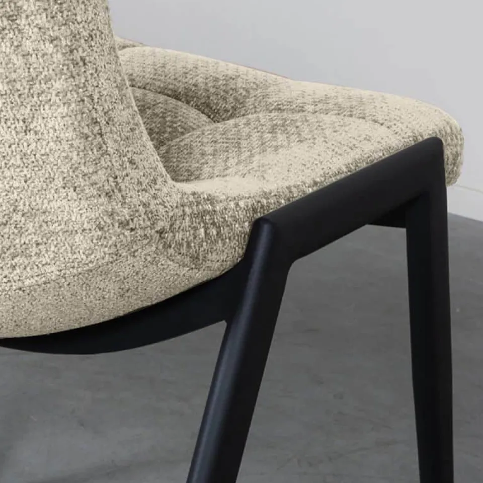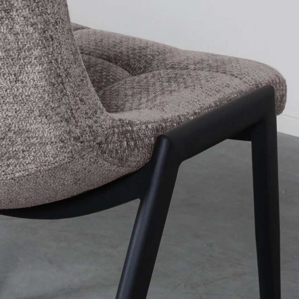 Eetkamerstoel Noor is een moderne en toegankelijke stoel met een verfijnde uitstraling. De zitting is bekleed met de luxe Elite-stof en afgewerkt met subtiele stiksels op de rugleuning, wat het ontwerp elegant en tijdloos maakt. Het slanke silhouet in combinatie met het stevige, zwart metalen onderstel zorgt voor een harmonieuze balans tussen comfort en design. Dankzij de licht gewatteerde zitting is Noor ook bij lange diners prettig in gebruik. De stoel is verkrijgbaar in zes kleuren en laat zich uitstekend mixen voor een speels effect aan de eettafel.