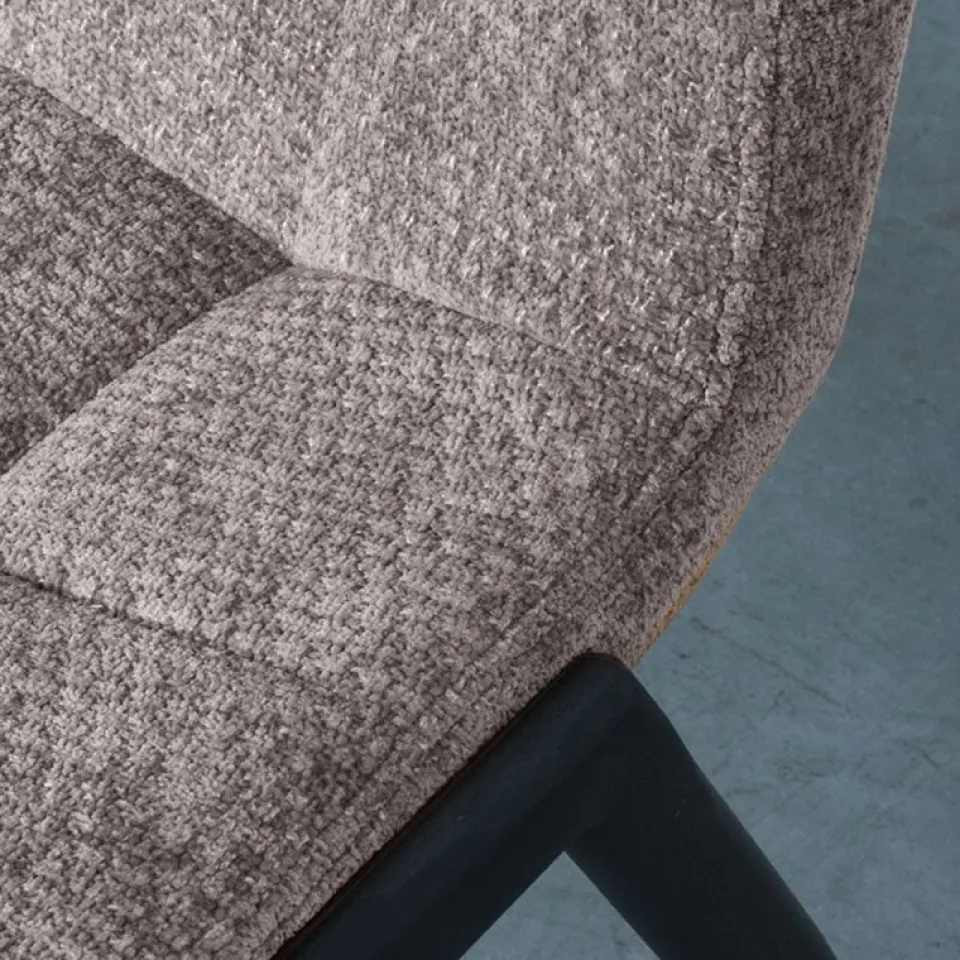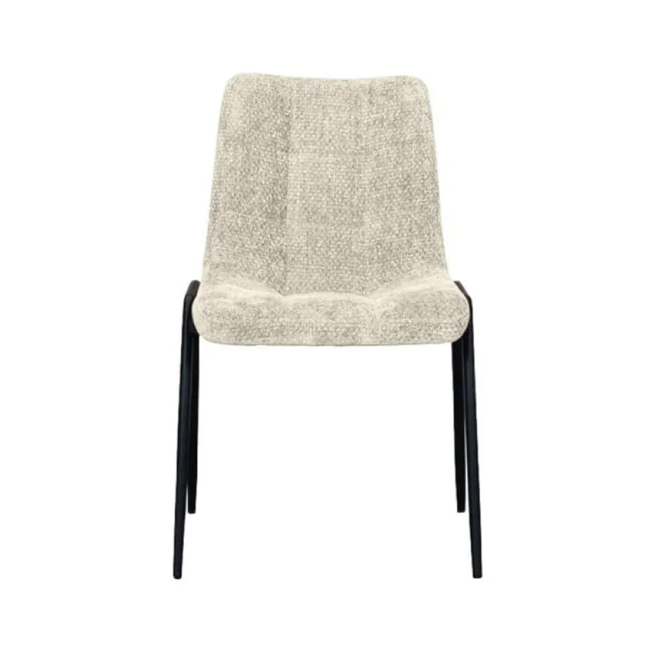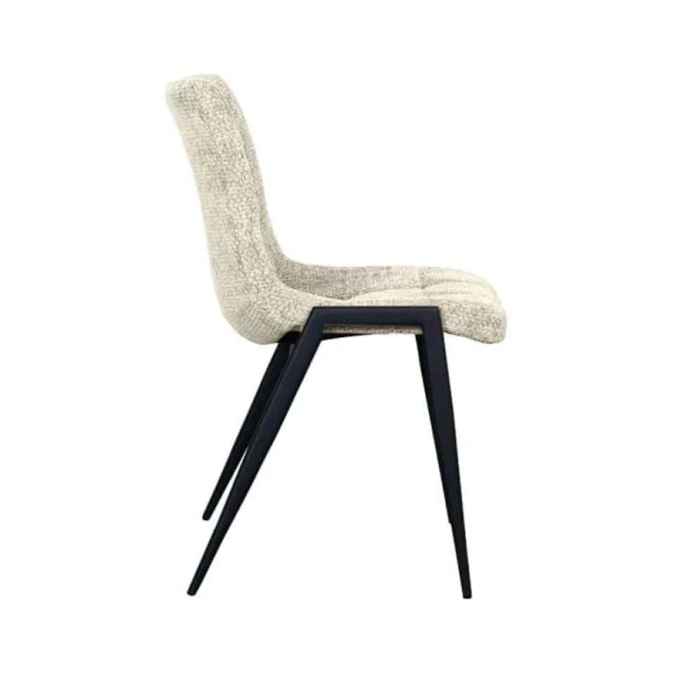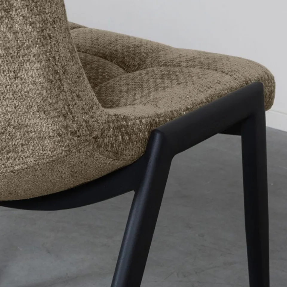 Eetkamerstoel Noor is een moderne en toegankelijke stoel met een verfijnde uitstraling. De zitting is bekleed met de luxe Elite-stof en afgewerkt met subtiele stiksels op de rugleuning, wat het ontwerp elegant en tijdloos maakt. Het slanke silhouet in combinatie met het stevige, zwart metalen onderstel zorgt voor een harmonieuze balans tussen comfort en design. Dankzij de licht gewatteerde zitting is Noor ook bij lange diners prettig in gebruik. De stoel is verkrijgbaar in zes kleuren en laat zich uitstekend mixen voor een speels effect aan de eettafel.