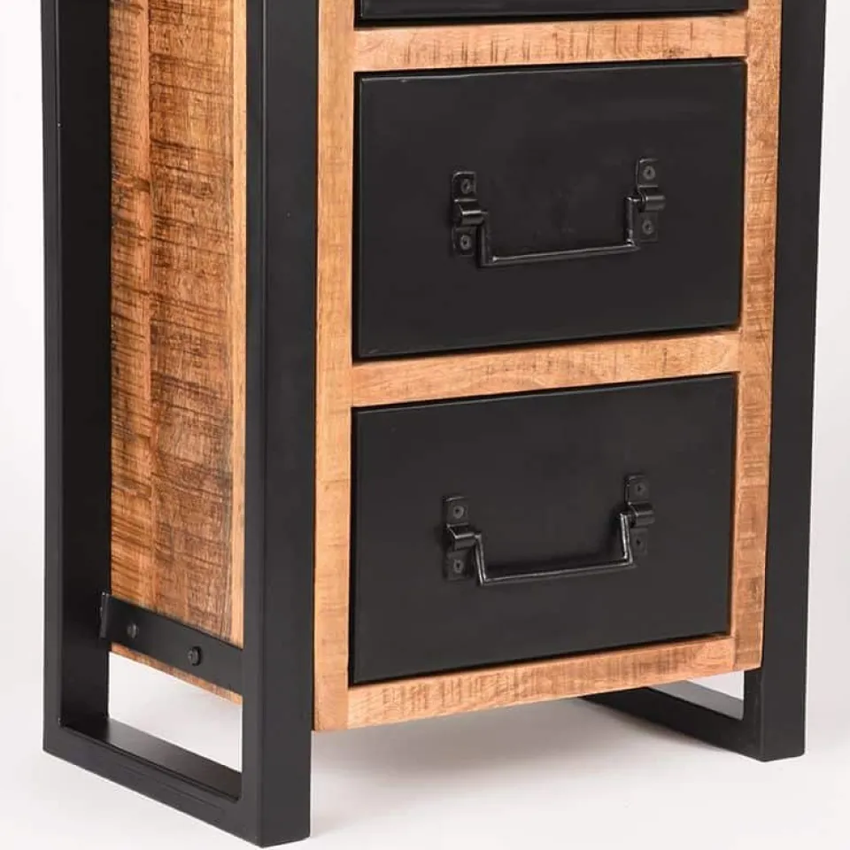 Ladekast Brussels van LABEL51 is met zijn ruwe mango houten oppervlaktes, gecombineerd met het zwart metalen frame een stoere en industriële kast. Ladekast Brussels is een solide en speelse ladekast die een fijn sfeertje geeft in een huis- en werkkamer maar ook ontzettend leuk is in een hal.