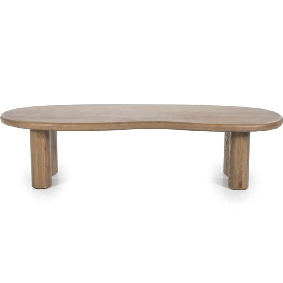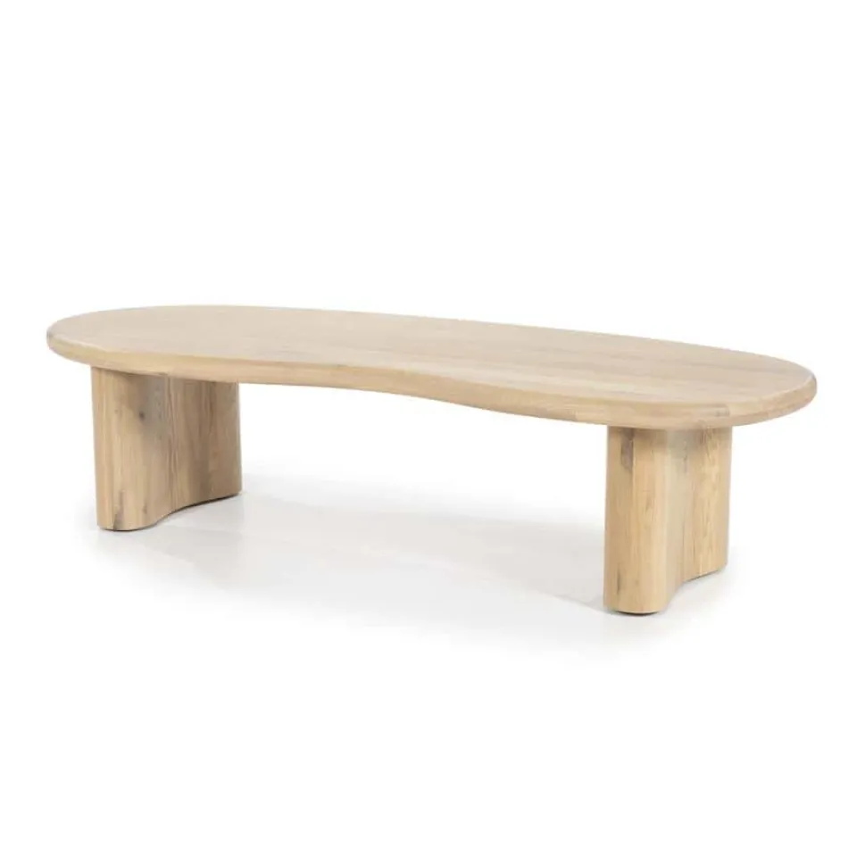 Salontafel Josh – een prachtige salontafel van eikenhout met een organische vormgeving. Het natuurlijke design straalt warmte en elegantie uit, ideaal voor een modern en sfeervol interieur!