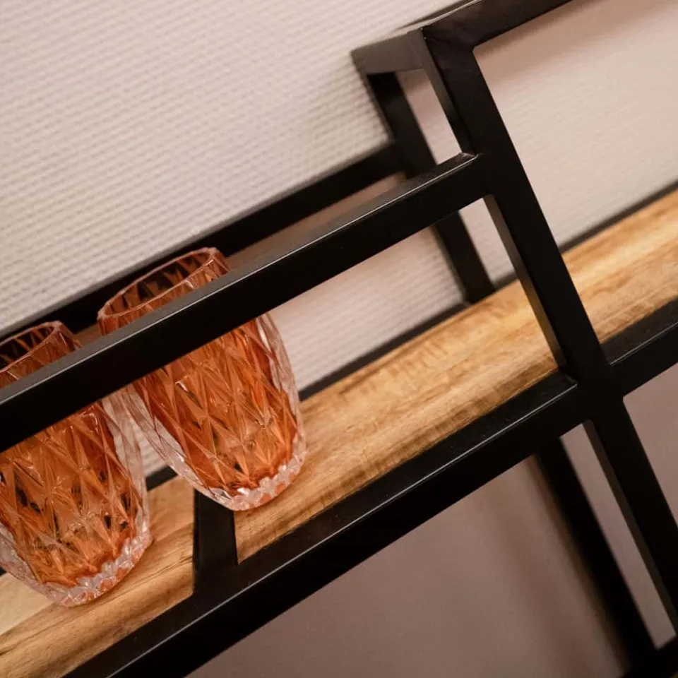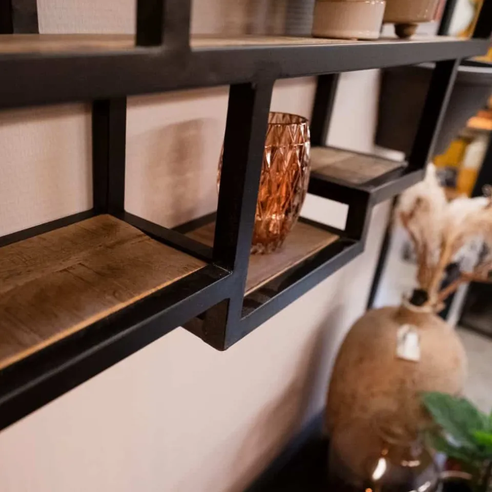 Maak kennis met Wandrek Saar, een ruim en functioneel wandrek dat perfect past in elk modern interieur. Dit wandrek is gemaakt van hoogwaardig mangohout en stevig metaal, waardoor het zowel stijlvol als duurzaam is. Dankzij het ruime ontwerp en de diverse opbergmogelijkheden is Wandrek Saar ideaal voor het organiseren en tentoonstellen van boeken, decoraties en andere persoonlijke items. Het warme mangohout voegt een natuurlijke charme toe, terwijl het metalen frame een robuuste, industriële uitstraling biedt.